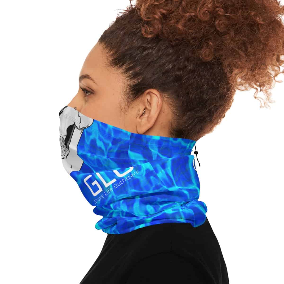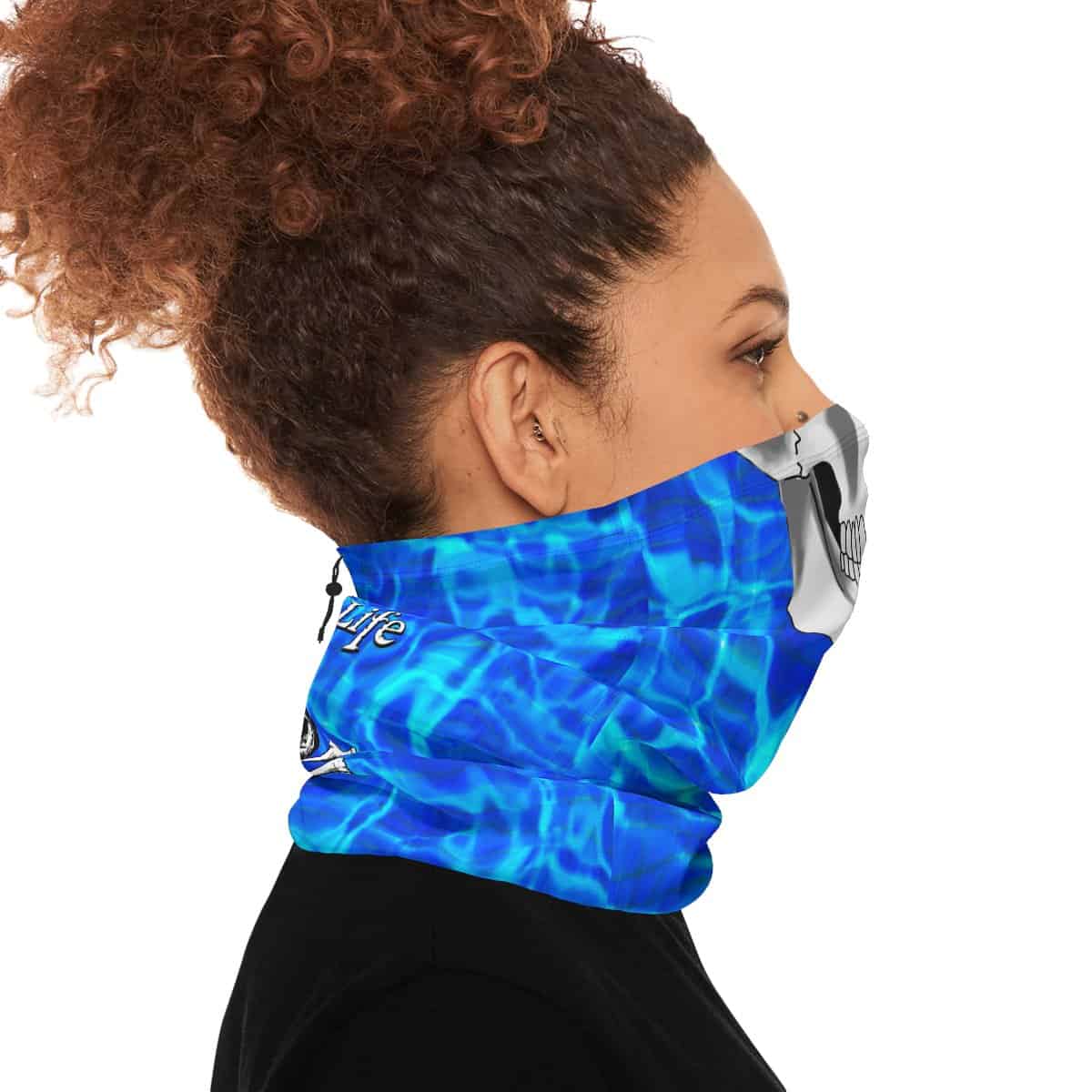 GLO Skull Deep Blue Winter Neck Gaiter With Drawstring